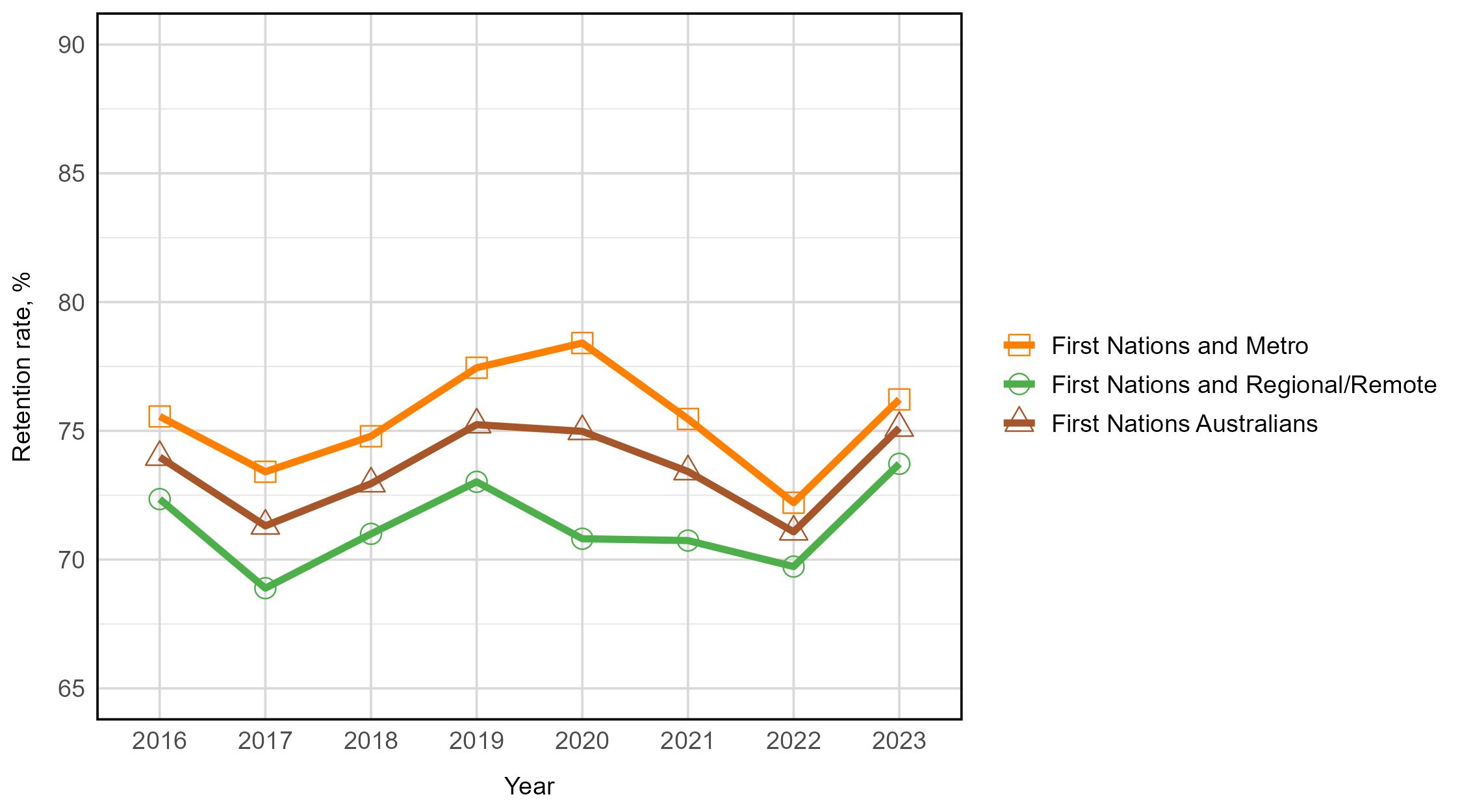 First Nations Australian students from metropolitan areas had higher retention rates than First Nations Australians from regional and remote areas